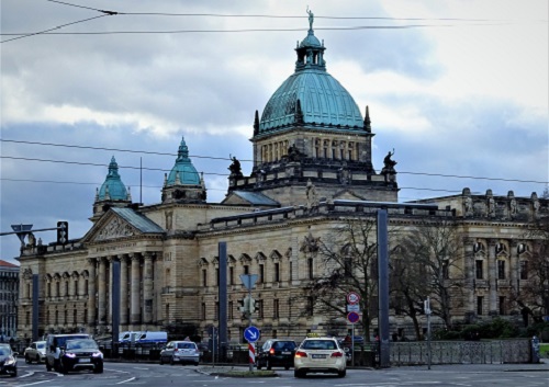 Leipzig besitzt viele imposante Bauwerke, so die Nikolai- und die Thomaskirche, zahllose Bürger- und Messehäuser mit herrlichen Passagen, das 1913 eingeweihte Völkerschlachtdenkmal und den ebenfalls aus der Kaiserzeit stammenden Bahnhof, das Alte und das Neue Rathaus, die Deutsche Bücherei und nicht zuletzt das heutige Bundesverwaltungsgericht. In der Haupthalle des nach Plänen von Ludwig Hoffmann und Peter Dybwad errichteten, innen und außen üppig dekorierten Justizpalastes wird bis zum 20. September 2018 die Wanderausstellung "Die Rosenburg - Das Bundesjustizministerium im Schatten der NS-Vergangenheit" ist Teil der vom Ministerium mit großem Nachdruck seit einigen Jahren betriebenen Aufarbeitung seiner nationalsozialistischen Vergangenheit.