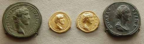 Auf seinen Münzen sind Kaiser Antonius und seine Gemahlin Faustina lebenswahr abgebildet. Die Geldstücke werden in der Ausstellung des Münzkabinetts im Bodemuseum auf der Berliner Museumsinsel gezeigt.