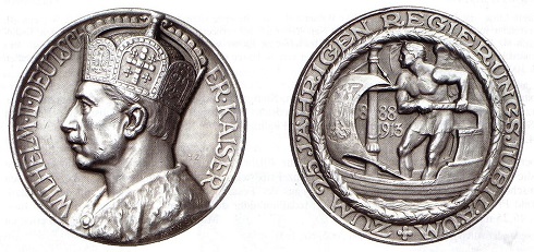 Kaiser Wilhelm, hier dargestellt auf einer Medaille von 1913 zu seinem 25-jährigen Regierungsjubiläum, war an der Archäologie interessiert und finanzierte Ausgrabungen. Was aber nicht seinem Geschichtsverständnis und Kunstgeschmack entsprach, hat er verachtet, bis auf Ausnahmen aber geduldet.