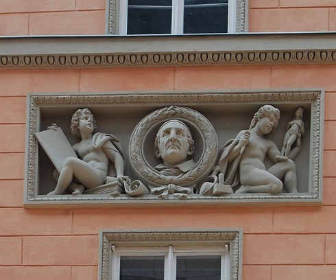So kommt es, dass man, am Schadowhaus vorbeigehend, berühmte Leitsterne der klassischen Antike und der italienischen Renaissance wie Perikles, Alexander der Große, Michelangelo, Raphael, Bramante und sowie zu dem auf einem Thron sitzenden Papst Julius II. sieht, der zu den großen Mäzenen des 16. Jahrhunderts gehörte und Auftraggeber der Peterskirche in Rom war. In der Mitte der in hellem Ockerton gestrichenen Hausfassade schaut Schadow, von seinem Bildhauerkollegen Hermann Schievelbein modelliert, freundlich auf die Passanten herab. Eine Tafel erinnert daran, dass der Direktor der Berliner Akademie der Künste hier gelebt und gearbeitet hat.