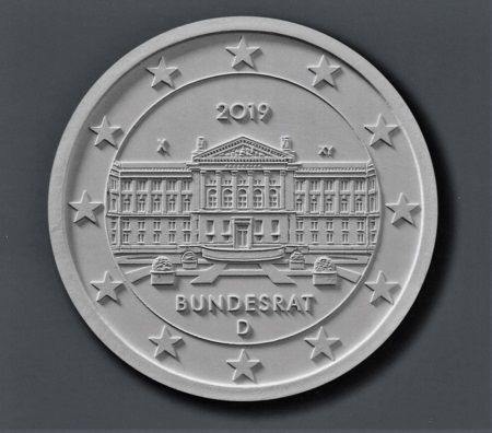 Nach der Zwei-Euro-Münze von 2018 mit der Ansicht des Schlosses Charlottenburg ist für 2019 ein weiteres Juwel Berliner Baukunst auf einer Kursmünze angekündigt. Nach einem Entwurf von Michael Otto werden alle fünf deutschen Prägeanstalten eine Umlaufmünze mit der Ansicht des Bundesrates in der Leipziger Straße prägen. Das palastartige Gebäude, das Preußens Glanz und Ende wie kaum ein anderes symbolisiert, ist seit 2000 Sitz des Deutschen Bundesrats, der Vertretung der 16 Bundesländer. Vorangegangen waren Bau- und Restaurierungsarbeiten, bei denen die Außenfassade im Wesentlichen unverändert blieb, das Innenleben aber modernisiert wurde. Bauleute haben Zwischenwände, Einbauschränke, abgehängte Decken und die veraltete Haustechnik beseitigt und das Innere entkernt. Ausquartiert wurde die Akademie-Bibliothek, die im ehemaligen Plenarsaal aufgestellt war. Eine Rekonstruktion des alten Zustands fand nicht statt, der neue Plenarsaal unter einem hohem Glasdach ist groß genug, um alle Abgesandte der Bundesländer aufzunehmen. Die Architekten Peter P. Schweger und Partner haben die historische Struktur und Ausstattung weiterer Räume, sofern überliefert, wiederhergestellt, aber auch Platz für neue Büros gewonnen.