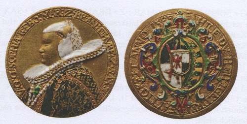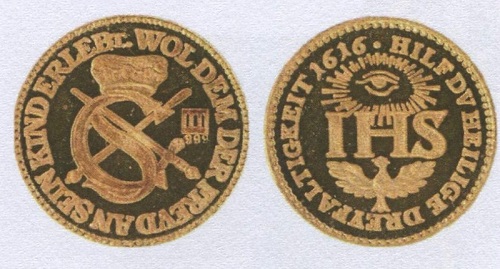 Mit dem Monogramm CS für das kurfürstliche Ehepaar Christian I. (gestorben 1611) und Sophia (gestorben 1622) auf den gekreuzten Kurschwertern unterm Kurhut sowie rückseitig mit dem Jesusmonogramm IHS als Abkürzung etwa für Jesus Heiland Seligmacher zwischen Gottesauge und der den Heiligen Geist symbolisierenden Taube geschmückt, beweisen die Goldstücke Frömmigkeit, Familiensinn und Traditionsbewusstsein. Was die Autoren über die von "Schmuckbesessenheit" befallene Kurfürstin und ihre Dukaten ermittelten, füllt das Sonderheft der seit vielen Jahren erscheinenden Freiberger Münzblätter ganz aus. Den Dresdnern sowie Gästen der sächsischen Landeshauptstadt dürfte Sophia sicher als Namensgeberin einer Kirche im Stadtzentrum ein Begriff sein, die beim Bombenbangriff vom Februar 1945 schwer beschädigt wurde. Obwohl es möglich gewesen wäre, hat das SED-Regime das Gotteshaus nicht aufgebaut. Als vor einigen Jahren am alten Platz die Busmannkapelle als Mahnmal errichtet wurde, gab der Dresdner Förderverein zur Finanzierung Neuprägungen des Sophiendukaten aus Gold, Silber, Kupfer und Zinn heraus, doch leider nicht mit Stempeln analog zum Original, wie die Autoren bemängeln, sondern nach einer sehr späten Neuprägung mit fehlerhafter Umschrift und weiteren unkorrekten Merkmalen.