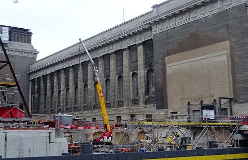 Kenner der Szene werfen der Preußenstiftung vor, sie hätte von den Problemen beim Umbau und der Sanierung des Pergamonmuseum kennen müssen. Unter dem Eindruck massiver Kritik an der Stiftung und weil Verzögerungen beim Umbau des Saals mit dem antiken Pergamonaltar und weiterer Räume für die Berliner Museumslandschaft unzumutbar sind, haben die Staatlichen Museen auf dem ehemaligen Kasernengelände gegenüber dem Bodemuseum eine Interimausstellung mit Skulpturen aus Pergamon und Gipsabgüssen der in die Wände eingelassenen Reliefs vom Altar erbaut. Wer an dem Bau vorbei kommt, sieht, dass nur noch Restarbeiten zu absolvieren sind. Nach der Eröffnung wird an dieser Stelle mit neuen Bildern berichtet. In der mächtigen Rotunde, die einem alten Gasometer nicht unähnlich ist, soll ein von Yadegar Asisi geschaffenes Panoramagemälde in einer Rotunde den Besuchern eine Vorstellung vom Leben im antiken Pergamon vermitteln. Das im Innenbereich aufgespannte Wandbild fand bereits 2011 und 2012 im Ehrenhof des Pergamonmuseums großen Zuspruch. Es ist 25 Meter hoch, 103 Meter lang und besteht es aus zahllosen farbigen Einzelbildern, die Asisi in Zusammenarbeit mit Archäologen zu einer einzigartigen Gesamtschau zusammengesetzt hat. Das Panoramabild schildert das Leben in Pergamon um das Jahr 129 nach Christus und bildet mit den steinernen Hinterlassenschaften von dort eine Einheit. Die neue Ausstellung soll nach dem Willen der Staatlichen Museen zu Berlin die Besucher ein wenig darüber trösten, dass sie weitere Jahre die im Pergamonmuseum wegen der Bauarbeiten ausgelagerten Hinterlassenschaften der Griechen und Römer sowie vorderasiatischer und weiterer Völkerschaften nicht sehen können.