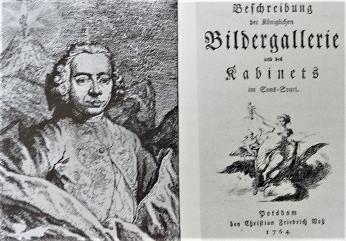 Bevor der Auftrag für die Bildergalerie rechts neben Schloss Sanssouci erging, befasste sich der König mit der Frage, was dort hinein kommen soll. Seinem Vertrauten und Kammerdiener Gabriel Fredersdorf trug er am 23. Juli 1754 auf: "Schreibe doch an Metra nach paris: wennt dortn Inventaires weren, Wohr Tablos verkaufet werden, ob von Tisiens, Paul Vernoesse, Jourdans und Corege vohr Honete preise kaufen könnte; hübsche große Tableau de galerie…" Gemeint waren Bilder von Tizian, Veronese, Jordaens, Corregio und weiteren Vertretern der flämischen und italienischen Malerei der Renaissance und des Barock. Nach dem Ersten Weltkrieg kamen die königlich-preußischen Schlösser samt Inhalt in Staatsbesitz. Zahlreiche Bilder, die 1830 nach Berlin angegeben worden waren, kamen in die Potsdamer Galerie zurück. Aufgrund alter Beschreibungen und Fotos konnte die historische Hängung wiederhergestellt werden.