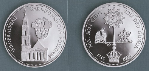 Das Gotteshaus war für die von Hitler geführte und mit brutalen Terrormaßnahmen befasste "Regierung der nationalen Revolution" so wichtig, dass sie silberne Zwei- und Fünf-Mark-Stücke mit der Gebäudeansicht und Hakenkreuzen zu beiden Seiten sowie der aus dem Programm der NSDAP von 1920 entnommenen Randschrift "Gemeinnutz geht vor Eigennutz" prägen ließ. Außerdem erklang im Reichsrundfunk regelmäßig deren Glockenspiel mit der von Wolfgang Amadeus Mozart komponierten Melodie zum Choral "Üb immer Treu und Redlichkeit" als Pausenzeichen.