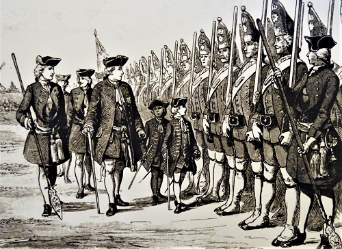 Der König fühlte sich als ihr Oberst persönlich verantwortlich für das Wohl und Wehe der erst rot, dann blau uniformierten Soldaten und ihrer Familien, mischte sich in private Dinge und übersah in seinem Eifer, wie sehr der bunt zusammen gewürfelte Haufen unter seiner Knute litt. Dem König standen achthundert bis tausend Werbeoffiziere zu Gebote, die quer durch Europa Jagd auf Soldaten machten. Es sollen sogar welche aus dem Gottesdienst und vom Krankenlager fortgeschleppt worden sein, da half kein Jammern und Klagen. Wer den Verlockungen der Schlepper und Bauernfänger nicht gleich folgte, wurde durch Alkohol und Erpressung gefügig gemacht, und wenn einer seinen Namen oder nur drei Kreuze unter eine Verpflichtungserklärung gesetzt hatte, war der preußischen Militärverwaltung auf Gedeih und Verderb ausgeliefert.