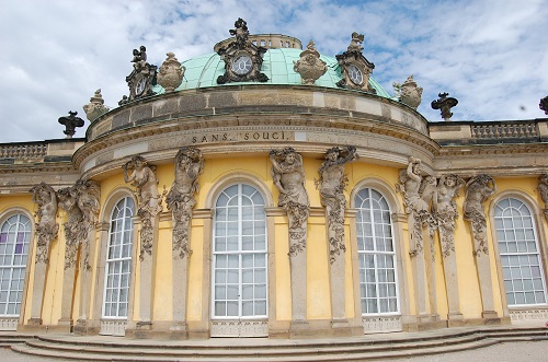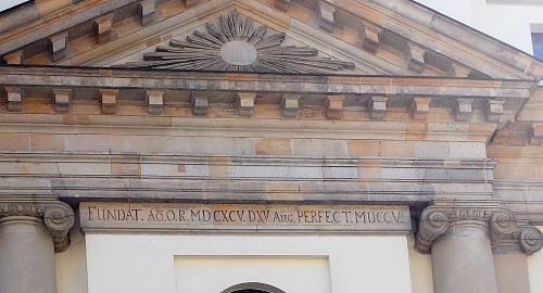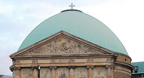 Für die nach Plänen von Hedwigskirche neben der Oper gab es ein berühmtes Vorbild. Der in der Architekturgeschichte exzellent bewanderte Friedrich II. hatte befohlen, das neue Gotteshaus für seine katholischen Untertanen "der berühmten Rotonda, oder dem Pantheon in Rom, ähnlich zu machen" einschließlich der obligatorischen Bauinschrift, die in der Übersetzung lautet "Dieses Denkmal der Gnade König Friedrichs, der Heiligen Hedwig geweiht, hat Angelo Maria Quirini, Kardinal der Heiligen Römischen Kirche, auf eigene Kosten vollendet" lautet. Gelegentlich ging es bei Widmungen auch ganz knapp zu, so bei der Inschrift "Bellevue" über dem Eingang zum Schloss Bellevue, dem Sitz des Bundespräsidenten, oder beim Motto über Friedrichs Potsdamer Sommerschloss "SANS, SOUCI" (Ohne Sorge), bei dem man sich seit über 250 Jahren über das Komma in der Mitte streitet.