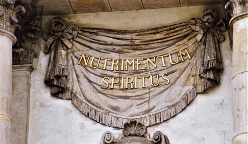 Friedrich der Große, der Enkel jenes ersten Preußenkönigs, hat sich in Berlin mehrfach durch Inschriften verewigt. "Fridericus Rex Apollini et Musis", übersetzt "König Friedrich Apoll und den Musen" kann man im Giebeldreieck der Staatsoper Unter den Linden lesen. In DDR-Zeiten stand an dieser Stelle viele Jahre nur "Deutsche Staatsoper". Die Wiederkehr der ursprünglichen Widmung hatte politische Gründe, denn unter Staats- und Parteichef Erich Honecker wurde um 1980 "Preußen" wieder hoffähig, was auch durch die Aufstellung des Friedrich-Denkmals Unter den Linden und eben auch die Wiederherstellung der königlichen Widmung am Opernhaus kund getan wurde, die Friedrich II. als Förderer der Künste und Wissenschaft feiert. Der Wahlspruch "Nutrimentum spiritus" (Nahrung des Geistes) an der ebenfalls unter der Regentschaft dieses Monarchen erbauten Bibliothek am Opernplatz, dem heutigen Bebelplatz, wegen der geschwungenen Form auch Kommode genannt, ist gelegentlich von spottlustigen Berlinern zu "Sprit is ooch Nahrung" verballhornt worden.