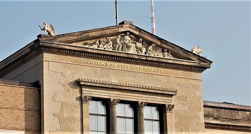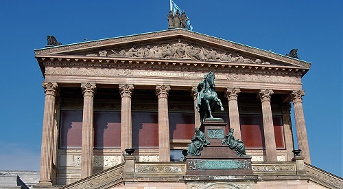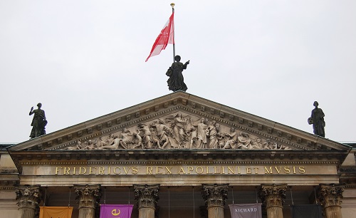 Auch Friedrich Wilhelm IV. ist auf verschiedenen Bauinschriften vertreten. Das Neue Museum auf der Museumsinsel verkündet an der Seite zur James-Simon-Galerie in der Übersetzung "Nur der Unwissende hasst die Kunst", während zur Nationalgalerie "Das vom seligsten Vater gegründete Museum hat der Sohn erweitert 1855" geschrieben steht. Gemeint ist der Romantiker auf dem Thron genannte Friedrich Wilhelm IV., der schräg gegenüber auf der Freitreppe der Nationalgalerie reitet. Deren Inschrift "DER DEUTSCHEN KUNST MDCCCLXXI" führt den Besucher in die Irre, denn in dem Kunsttempel sind natürlich auch zahlreiche Bilder und Skulpturen versammelt, die jenseits der deutschen Grenzen geschaffen wurden. Außerdem wurde die Galerie erst 1876 eingeweiht und nicht schon, wie die Inschrift vermuten lässt, im Jahr der deutschen Reichseinigung 1871.