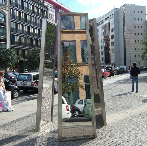 Die Häuser, die den unregelmäßig geformten Hausvogteiplatz säumen, erinnern an den wirtschaftlichen Aufschwung, den die junge Reichshauptstadt nach der Gründung des deutschen Kaiserreichs im Jahre 1871 nahm. Ein aus drei großen Spiegeln gebildetes Denkmal am Eingang zum U-Bahnhof Hausvogteiplatz ist den jüdischen Inhabern und Angestellten der an dieser Stelle tätigen Konfektionsbetriebe gewidmet, die nach 1933 von den Nationalsozialisten in die Emigration getrieben oder im Zweiten Weltkrieg in die Vernichtungslager verschleppt und dort ermordet wurden. Wenn man den U-Bahnhof verlässt, kann man auf einzelnen Treppenstufen die Namen zahlreicher jüdischer Konfektionshäuser lesen, dazu die Daten ihrer Enteignung durch die Nazis.