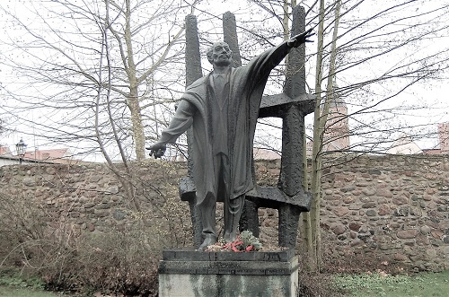 An der Stadtmauer von Luckau (Landkreis Dahme-Spreewald) erinnert ein von Theo Balden geschaffenes Standbild an den linken Sozialdemokraten und Mitbegründer der Kommunistischen Partei Deutschlands (KPD) Karl Liebknecht, der vor einhundert Jahren gemeinsam mit Rosa Luxemburg. Ursprünglich 1969 zum 50. Jahrestag der Novemberevolution und der Gründung der KPD auf dem Markplatz enthüllt und im Zentrum von politischen Veranstaltungen stehend, wurde das Denkmal nach dem Ende der DDR nicht abgebaut, sondern an die Stadtmauer verbannt. Das Bildwerk aus Bronze zeigt den Politiker, wie er eine Wand durchbricht und seine Zuhörer in einer für ihn charakteristischen und durch Fotos und eine kurze Filmsequenz dokumentierten Haltung anspricht. Der Rechtsanwalt und Reichstagsabgeordnete von 1912 bis 1916 war Sohn des Mitbegründers der Sozialdemokratischen Arbeiterpartei Deutschlands (SDAP) Wilhelm Liebknecht. Er hatte sich schon vor dem Ersten Weltkrieg mit Rosa Luxemburg als einer der einflussreichsten Führer der deutschen Linken profiliert und wortgewaltig gegen Rüstung und Kriegstreiberei gekämpft. Wegen seiner Schrift "Militarismus und Antimilitarismus unter Berücksichtigung der internationalen Jugendbewegung" wurde Karl Liebknecht als Hochverräter verurteilt und auf die Festung Glatz geschickt.