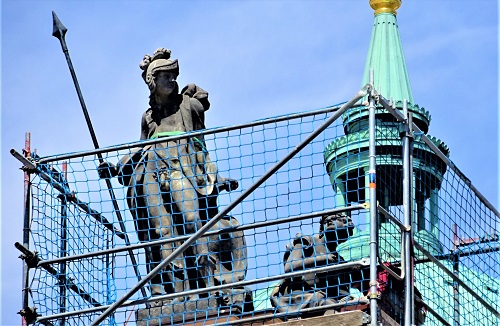 In einer Feierstunde am wieder aufgebauten Stadtschloss, dem heutigen brandenburgischen Landtag, wurde am 18. Juni 2019 der Startschuss zur Wiederherstellung der barocken Dachlandschaft dieses die Innenstadt so sehr prägenden Gebäudes gegeben. Auf die Attika an der Seite zur Humboldtstraße, dem Palais Barberini gegenüber, kehrten die aus der Erbauungszeit unter Friedrich II. stammenden Sandsteinfiguren des mythischen Helden Theseus und seiner Geliebten Ariadne zurück. In der kommenden Zeit sollen weitere restaurierte, ergänzte oder neu gefertigte Skulpturen dieser Art das Dach des Landtagsgebäudes schmücken. Beim Warten auf die Reden der Landtagspräsidentin Britta Stark, Jochen Kuke, dem Vorsitzenden des Vereins Potsdamer Stadtschloss e. V., sowie von Vertretern der Landeshauptstadt war zu erfahren, dass vor Jahren die Linken in Potsdam strikt gegen den Wiederaufbau des Stadtschlosses waren. Heute würden sie das Gebäude, in dem sie zu Plenartagungen und Fraktionssitzungen zusammenkommen und das eine große Touristenattraktion darstellt, "nicht schlecht" finden.