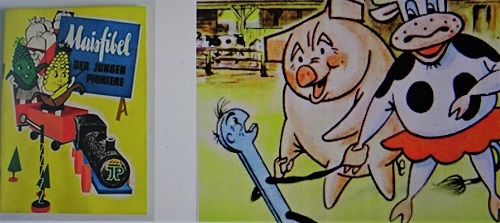 Flinke Reimeschmiede und Pressezeichner mühten sich in der DDR, die Vorgaben der Partei in Verse und Bilder umzumünzen und den Bauern die ungewohnte Futtersorte schmackhaft zu machen. So brachte der Lyriker Heinz Kahlau 1960 eine Maisfibel heraus, in der diese Verse zu finden sind: "Denn weil bei uns aus vielen kleinen Feldern / die Bauern nun ein großes Feld gemacht, / weil sie gemeinsam für die Aussaht sorgen, / gemeinsam auf den Höchstertrag bedacht, / weil sich die Menschen und das Land verändern, / damit das Leben besser werden kann - / muss bessres Futter größeren Nutzen bringen, / gehört der Mais in jeden Anbauplan". Dass das Ziel utopisch war, dass man Felder, Wasser, Maschinen und Räumlichkeiten braucht, um den Mais ordentlich anzubauen, zu ernten und zu lagern, wusste auch der Dichter, doch verkürzte er das Verfahren auf die Gleichung Mais = Fleisch.