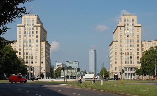 Bis nach dem Beschluss vom 21. Dezember 1949, Stalins Geburtstag, zum Bau der Stalinallee zu errichten, dauerte es noch zwei Jahre, bis die ersten Häuser in die Höhe schossen. Zwei in der Tradition des Bauhauses errichtete Laubenganghäuser erinnern an ursprüngliche Absichten, die Stalinallee in der von den Nazis unterdrückten und von Ulbricht als amerikanische Unkunst diffamierten Bauhaus-Tradition zu bauen. Die von ihm und anderen Funktionären favorisierten sieben- bis dreizehngeschossigen Wohnpaläste nach Moskauer Vorbild mit Zierrat und Türmchen wurden im Westen als Ausdruck der Umorientierung der SED-Führung auf die sowjetische Monumentalarchitektur und als Ausgeburt von Hybris, Hässlichkeit und Überladenheit, als riesige Attrappe und Verschnitt von überlebten Baustilen und irgendwie fett kritisiert. Mittlerweile findet die ehemalige Stalinallee bei Architektur- und Kunsthistorikern Gnade. In den vergangenen Jahren wurden Millionen in die Sanierung der maroden Wohnhäuser und Geschäfte gesteckt, und die Bewohner fühlen sich hier wohl.