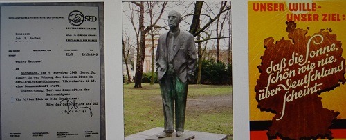 Johannes R. Becher, der in seinem Moskauer Exil während der Nazizeit zahlreiche Deutschland-Dichtungen verfasst hatte, schrieb für die spätere DDR-Hymne verschiedene Textentwürfe. Sie sollte nach eigenem Bekunden von jeder Gemüsefrau verstanden werden. Übrigens war zunächst der Komponist Otmar Gerster beauftragt, die neue Landeshymne zu vertonen, und er tat es auch. Doch dann traf Becher in Warschau Hanns Eisler, der auf einem Chopin-Flügel spontan eine Melodie vortrug, die dem Dichter gefiel. In Ost-Berlin fand später in Anwesenheit von SED- und FDJ-Funktionären ein Wettstreit zwischen beiden Komponisten statt, aus dem Eisler siegreich hervor ging, während man bei Gersters choralähnlicher Vertonung hymnisches Pathos vermisste und sie ad acta legte. Becher und Eisler wurden für ihr gemeinsames Werk 1950 mit dem Nationalpreis, der höchsten DDR-Auszeichnung für Künstler und Wissenschaftler ausgezeichnet. In der Bundesrepublik wurde im Rahmen einer Kampagne gegen die DDR-Hymne behauptet, Eisler habe die ersten Noten des Songs von Peter Kreuder "Good bye, Jonny!" plagiiert, den der Schauspieler Hans Albers in dem Film "Wasser für Canitoga" sang. Der Streit verlief im Sande. 1989/90 wurde die entscheidende Zeile "Deutschland einig Vaterland" von Bürgerrechtlern skandiert und alsbald Realität.