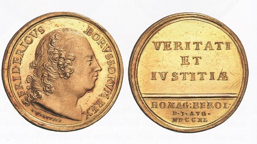 In zahlreichen Briefen und Abhandlungen bekundete Preußens König Friedrich II. seinen Standpunkt, er sei der erste Diener seines Staates und es sei seine vornehmste Aufgabe, "sich bis zur Grenze seiner Fähigkeiten ausgebend" um das Wohl seiner Untertanen zu sorgen. Kaum am 31. Mai 1740 als Nachfolger des Soldatenkönigs Friedrich Wilhelm I. auf den Thron gelangt, verkündete er sein Regierungsprogramm, das er unter das Motto "Wahrheit und Gerechtigkeit" stellte. Von väterlicher Bevormundung befreit, schnitt der Achtundzwanzigjährige alte Zöpfe ab. Er öffnete die Kornkammern für die Armen, leitete Reformen des Justiz- und Finanzwesen ein, sorgte für die Straffung der Verwaltungsarbeit, unterwarf sich und seine Beamten strenger Büroarbeit. Der königliche Musensohn ließ Gelehrte und Künstler nach Berlin und Potsdam kommen, erteilte der am Boden liegenden Akademie der Wissenschaften neue Aufgaben und sorgte mit prächtigen Staatsbauten sowie Schlössern und Gärten für die Verschönerung von Berlin und Potsdam. Der König warb neue Soldaten an, und die Potsdamer Riesengarde, der ganze Stolz seines Vaters, musste sich schon bald im Kugelhagel des noch im gleichen Jahr begonnenen ersten Schlesischen Kriegs bewähren.