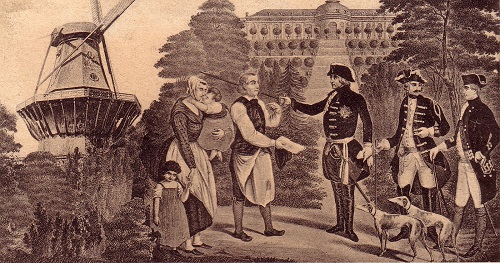 Die Mühen, die Justiz und Gesetzgebung zu reformieren, offensichtliche Fehlurteile zu korrigieren sowie Gerechtigkeit auch dem "kleinen Mann auf der Straße" angedeihen zu lassen, trugen zur Legende bei, dass Friedrich der Große ein Mann des Rechts gegen jedermann war. Zahlreiche Anekdoten vermitteln dieses Bild, doch sprechen Tatsachen aus dem preußischen Alltag auch eine andere Sprache. "Ich kenne alle Advokaten-Streiche und lasse mich nicht verblenden. Hier ist ein Exempel nötig, weil die Canaillen enorm von meinem Namen Missbrauch haben, um gewaltige und unerhörte Ungerechtigkeiten ausüben. Ein Justitiarius, der chicaniren tut, muss härter als ein Straßen Räuber bestrafft werden. Denn man vertraut sich am erstern, und vor letzterm kann man sich hüten", schrieb der König an seinen Justizminister von Karl Abraham von Zedlitz am 28. Dezember 1779 im Zusammenhang mit der "Arnoldschen Sache". Der König hatte sich in ein Verfahren eingemischt, bei dem es um die Wassermühle des in der Neumark lebenden Müllers Christian Arnold ging. Hier werde das Recht eines einfachen Mannes zugunsten der Privilegien des Adels gebrochen, war er überzeugt. Der Müller erhielt die Mühle zurück, und einige in den Fall verwickelte Beamte kamen in Festungshaft. Im friderizianischen Anekdotenschatz wird der kecke Hinweis eines Potsdamer Windmüllers auf die Rechtsprechung am Berliner Kammergericht zur Drohung kolportiert, er, der König, könne die geräuschvoll arbeitende Mühle unweit von Schloss Sanssouci ja einfach wegnehmen. Das aber ist nicht geschehen, die Windmühle existiert immer noch und ist eine der Sehenswürdigkeiten im Potsdamer Schlösser- und Gartenparadies.