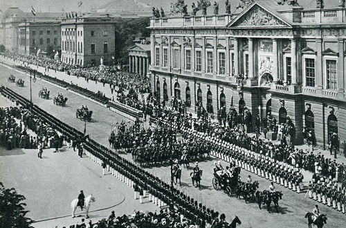Für Leute vom Film war es zunächst nicht einfach, an höfischen Haupt- und Staatsaktionen teilzunehmen. Die Beamten, welche die dafür erforderliche Erlaubnis erteilten, konnten mit der "Jahrmarktsangelegenheit" nichts anfangen und hielten sich zudringliche Vertreter der neuen Kunst vom Lebe. Diese Ablehnung bekam ein Pionier des Kinos, Oskar Messter zu spüren, als er 1897 mit seinem Gesuch, die Feierlichkeiten zum einhundertsten Geburtstag Kaiser Wilhelms I. mit seiner Filmkamera ablichten zu dürfen, von Pontius zu Pilatus geschickt wurde. Messter ließ nicht locker, es gelang ihm, den immer an technischen Neuerungen interessierten Kaiser für sein Anliegen zu interessieren. Wilhelm II. sah sich zum erstenmal selbst, war begeistert und sorgte dafür, dass man Messter einen Offizier als Begleitung und Türöffner an die Seite stellte. "Sie müssen einen Start mehrerer großer Kreuzer aufnehmen, das muss ein herrliches Bild abgeben", trug der prestigesüchtige Kaiser dem Filmemacher auf. Wilhelm II. hatte erkannt, was in dem neuen Medium steckt, und so wurde Messter sein wichtigster Kameramann. Zunehmend nutzte der Monarch die Kinematographie für seine Selbstdarstellung und bestimmte auch die abzulichtenden Themen - Grundsteinlegungen, Paraden, Denkmalweihen, Empfänge von Staatsgästen, nicht zu vergessen Aufnahmen von der Familie sowie die Auslandsaufenthalte und Schifffahrten, die er unternahm.