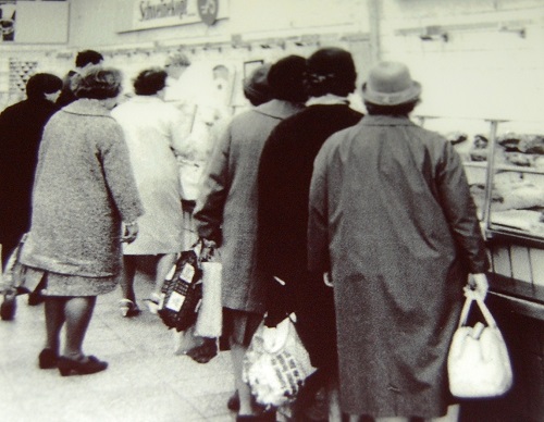 Ökonomen haben ausgerechnet, dass Millionen Arbeitsstunden ausfielen, nur weil Werktätige ihren Arbeitsplatz verließen, um sich in die Warteschlangen anzustellen, wenn es irgendwo da gerade Südfrüchte oder andere begehrte Erzeugnisse gab. Da ging die offiziell nicht gewollte, aber umso lieber benutzte Parole "Kein Paradies ohne Schlangen" um. Oft nahmen Leute aus der Provinz lange Fahrten mit der Bahn oder dem Auto in Kauf, um in der DDR-Hauptstadt oder wenigstens in den Bezirksstädten etwas zu ergattern, was bei ihnen zuhause Mangelware ist. Manche Waren wurden für kleinen Gewinn weiter verkauft, manches wurde auch nur auf Vorrat angeschafft, obwohl man es im Moment nicht gebrauchen konnte.