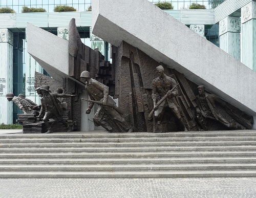 In Warschau erinnern verschiedene Denkmäler und Gedenkstätten, aber auch Museen an die Niederschlagung des Aufstands im Getto 1943 (links) sowie des Warschauer Aufstands 1944. Bereits 1946 wurde in den Trümmern des früheren Gettos ein erstes Ehrenmal in Form einer runden Steinplatte errichtet. Der jüdische, in Warschau geborene Bildhauer Nathan Rapaport schuf in Zusammenarbeit mit Leon Marek Suzin ein anderes Ehrenmal aus schwedischen Labradoritblöcken, aus denen Rüstungsminister und Architekt Albert Speer ein Siegesmal errichten wollte. Das am 19. April 1948 eingeweihte Ehrenmal besteht aus einer elf Meter hohen steinernen Stele mit einer bronzenen Skulpturgruppe davor und zwei bronzenen Menorahs (Leuchter) an den Seiten. Eine Kopie der Skulpturengruppe steht im Yad-Vashem-Museum in Jerusalem. Auf der Rückseite befindet sich ein Flachrelief mit der Darstellung des Zuges der Holocaust-Opfer. Weltweite Aufmerksamkeit erfuhr das Ehrenmal im Dezember 1970 durch den Kniefall des damaligen deutschen Bundeskanzler Willy Brandt.