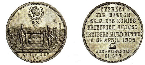 Kopf- und Schriftlösungen sind auf Talern von Hannover (1853), Nassau (1831, 1861) und Sachsen (1839, 1853) zu sehen. Ähnlich gestaltet sind sächsische Münzbesuchsmedaillen in Zweimarkgröße von 1892, 1903 und 1905 anlässlich von Inspektionen der Könige in ihrer Münze zu Muldenhütten bei Freiberg, kenntlich am Münzzeichen E. Mit ihrem von der Norm abweichenden Design werfen sie die Frage auf, ob es gerechtfertigt ist, diese Silberstücke ohne den obligatorischen Reichsadler in einem Reichsmünzen-Katalog aufzuführen und damit aufzuwerten, wie es einst Kurt Jaeger getan hat und wie es nun in allen Reichsmünzen-Katalogen steht. Der Einwand trifft auch die unter der Jaeger-Nr. 52 M aufgenommene Medaille in Dreimarkgröße von 1918 anlässlich des Besuchs des bayerischen Königs Ludwig III. in der Münze zu München. Die Rarität weicht insofern von der Norm ab, als sie auf der Rückseite statt des Reichsadlers eine Spindelpresse zeigt.