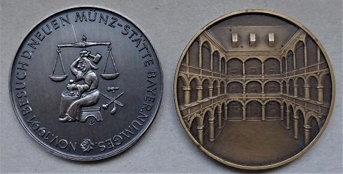 Schauen wir ältere deutsche Münzbesuchstaler und -medaillen an, so fallen formelhafte Inschriften wie "In höchster Gegenwart" auf. Sie findet sich auf einer mit einem Wappen geschmückten Klippe von 1775 anlässlich des Besuchs des Landgrafen Friedrich II. von Hessen-Kassel und seiner Gemahlin in der landeseigenen Münzstätte zu Kassel. Wie Jacob C. C. Hoffmeister in seinem Katalog der hessischen Münzen, Medaillen und Marken bemerkt, sei das "erhabene Fürstenpaar bei Betrachtung der Prägemaschine zugleich mit dieser Medaille überrascht" worden. In den Münzkatalogen für das 19. Jahrhundert sind Münzbesuchs-Münzen in Talergröße und kleinere Werten aus Hannover, Nassau, Sachsen, Württemberg und anderen Ländern zu finden. Sie haben nichts zu bieten als einen fürstlichen Kopf und eine Widmung, um die manchmal ein Kranz gelegt ist. Im Einerlei der mehrzeiligen Widmungen auf deutschen Münzbesuchs-Geprägen macht ein württembergischer Gulden von 1844 eine rühmliche Ausnahme, geprägt anlässlich der Visite von König Wilhelm I. in der neuen Münzstätte in Stuttgart. Hier ist die Geldfabrik unter einem doppelten Schriftbogen dargestellt.