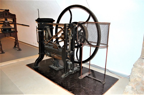 Nach Beschreibungen der Schäden, die Hochwasser, welches regelmäßig Dresden heimsuchte, sowie der von "modernen Kyklopen" erledigte Arbeit in der Schmelzstube und im weiter weg gelegenen Silberhammer, wo die Münzbleche gewalzt und die Schrötlinge (Ronden) geschnitten, geglüht, justiert und gerändelt wurden, wandte sich Barduleck in seiner Beschreibung dem Prägen zu. "In der Prägestube standen sechs Uhlhorn-Prägemaschinen, zwei große, zwei mittlere und zwei kleine. Als seinerzeit die schweren Eisenkörper der Maschinen aufgestellt wurden, hatten die Arbeiter gesagt, es sind unsere Leichensteine', denn es genügt nur ein Mann zu ihrer Bedienung."