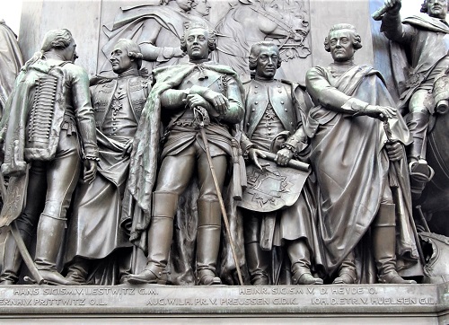 Es kam in der Zeit Friedrichs des Großen selten vor, dass hochrangige Militärs und Zivilisten durch Medaillen geehrt wurden. Eine solche dem Oberst von der Heyde gewidmete Medaille aus dem Jahr 1760 kombiniert dessen Bildnis mit einer allegorischen Darstellung, bei der der Kriegsgott Mars die Angriffe eines feuerspeienden Ungeheuers abwehrt und dabei von Borussia, der Symbolfigur der preußischen Monarchie, unterstütz wird. Dass der Verteidiger von Kolberg leibhaftig mit weiteren preußischen Militärs auf dem Sockel des Reiterdenkmals Friedrichs des Großen Unter den Linden steht, unterstreicht die hohe Anerkennung, die die Könige von Preußen diesem mit dem Orden Pour le Mérite ausgezeichneten Offizier zuteil werden ließ.