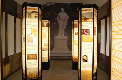 Theodor Fontane wurde am 30. Dezember 1819 in Neuruppin im Haus mit der Löwen-Apotheke in eine Familie mit hugenottischen Wurzeln hinein geboren. Seine Eltern Louis Henri und Emilie Fontane waren nach ihrer Heirat 1819 von Berlin nach Neuruppin gezogen, wo sie eine Apotheke kauften. 1826 sah sich Louis Henri Fontane gezwungen, das Haus mit der Apotheke zu verkaufen, um Spielschulden bezahlen zu können. Die Fontanes zogen einige hundert Meter weiter in eine geräumige Mietwohnung in der heutigen Karl-Marx-Straße 94. Die Familie zog 1827 nach Swinemünde. Zu Besuchen und Recherchen kam der Dichter immer wieder in seine Heimatstadt. Seinem Landsmann Karl Friedrich Schinkel hat er in den "Wanderungen durch die Mark Brandenburg" ehrenvolle Zeilen gewidmet. Theodor Fontane war ursprünglich Apotheker, doch gefiel ihm diese Tätigkeit überhaupt nicht. Und so wandte er sich der wirtschaftlich und sozial gesehen nicht unproblematischen Schriftstellerei zu und war zunächst als Korrespondent für verschiedene Zeitungen in England tätig. Nach seiner Heimkehr nach Berlin schrieb er für die "Kreuzzeitung" und war als Theaterkritiker erfolgreich, um sich dann in höherem Alter seinen Romanen zu widmen, von denen viele als Vorabdruck in damaligen Journalen erschienen.