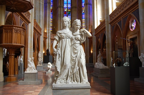 Verehrer des Berliner Baumeisters Karl Friedrich Schinkel sowie der Bildhauer Johann Gottfried Schadow, Christian Daniel Rauch, Christian Friedrich Tieck und anderer hochkarätiger Vertreter der Berliner Bildhauerschule des 19. Jahrhunderts dürfen sich darauf freuen, dass in wenigen Monaten mit der Wiedereröffnung der Friedrichswerderschen Kirche ein strahlender Stern am Berliner Museumshimmel wieder aufsteigt und Gelegenheit sein wird, hochkarätige Skulpturen wie vor der Schließung ganz von nahe zu bewundern. Ein ausgesprochener Augenschmaus ist das von Schadow geschaffene Gipsmodell für das Doppelstandbild aus Marmor der aus Mecklenburg-Strelitz stammenden Prinzessin und späteren preußischen Königin Luise und ihrer Schwester Friederike sowie das von Christian Daniel Rauch gearbeitete Grabmal der 1810 mit erst 34 Jahren verstorbenen Luise. Hinzu kommen Marmorstandbilder großartiger Künstler der Schinkelzeit, und zwar das von Christian Friedrich Tieck und Hermann Wittig um 1855 geschaffene Schinkel-Denkmal, die Marmorfigur des Begründers der Altertumskunde Johann Joachim Winckelmann, ein Werk von Ludwig Wilhelm Wichmann, der sich in Schadows Werkstatt die ersten Sporen als Bildhauer verdient hatte. Natürlich wird Johann Gottfried Schadow selbst mit einem von Hugo Hagen geschaffenen Denkmal geehrt, ihm gegenüber steht Christian Daniel Rauch, ein Standbild von Hugo Hagen beziehungsweise Friedrich Drake. Figuren schmückten einst zusammen mit weiteren Künstlerfiguren die Säulenhalle des Alten Museum am Lustgarten.