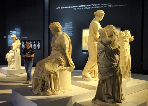 Das neue Pergamonpanorama auf einem ehemaligen Kasernengelände gegenüber dem Bodemuseum wird ergänzt durch eine Interimausstellung von originalen Skulpturen aus Pergamon. Wer den Turm im Inneren des Ausstellungshauses erklettert, kann in wechselnder Beleuchtung und begleitet von brausenden Orchesterklängen, leisem Vogelgezwitscher, Rufen wie auf einem Markplatz oder ganz leise im Hintergrund auch Hammerschläge von Bildhauern das bunte Treiben betrachten, wie es um das Jahr 129 nach Christus ausgesehen haben kann, als Kaiser Hadrian anlässlich eines Festes zu Ehren des Gottes Dionysos in Pergamon weilte.