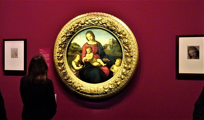 Die Sonderausstellung am Kulturforum ehrt einen der bedeutendsten Künstler der italienischen Renaissance und bietet die einzigartige Gelegenheit, die fünf Madonnenbilder aus dem Bestand der Berliner Gemäldegalerie zu vereinen. Erstmals werden das Rundbild der Madonna Terranuova aus der Zeit um 1505 gemeinsam mit Raffaels Zeichnung ihres Kopfes präsentiert. Neben den Berliner Werken von Raffael ist eine kostbare, meisterlich gemalte Madonna aus der National Gallery in London als Leihgabe zu sehen. Diese "Madonna mit den Nelken" aus den Jahren 1506 bis 1508 verlässt England zum ersten Mal. Gemalt wurde das kleine Andachtsbild kurz bevor Raffael Florenz in Richtung nach Rom verließ. Für die anmutige Darstellung hatte er sich auch an der berühmten "Madonna Benois" von Leonardo da Vinci inspirieren lassen, die heute in der Eremitage Sankt Petersburg zu sehen ist. .