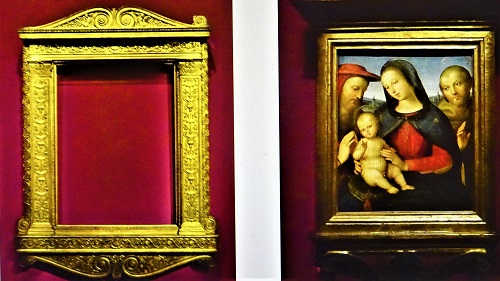Die am Kulturforum gezeigten Gemälde entstammen dem Frühwerk des Malers aus den Jahren 1500 bis 1508. Sie wurden vor allem in der ersten Hälfte des 19. Jahrhunderts für die Könige von Preußen erworben und legen Zeugnis ab vom Kult um Raffael in der Romantik, "als die italienische Malerei des 14. und 15. Jahrhunderts wiederentdeckt wurde. In Preußen spielte Raffael eine besondere Rolle. Davon zeugt bis heute der Raffaelsaal in der Orangerie von Sanssouci, in dem Friedrich Wilhelm IV. Kopien deutscher Künstler des 19. Jahrhunderts ausstellte", ist auf einer Schrifttafel in dem abgedunkelten, an den Wänden dunkelrot bemalten Raum zu sehen. In dem Riesengebäude unweit von Schloss Sanssouci hat Friedrich Wilhelm IV., den man Romantiker auf dem Thron nannte, die Sammlung seines Vaters Friedrich Wilhelm III. durch weitere Werke ergänzt und als Kultstätte zum Raffael-Gesamtkunstwerk inszeniert.