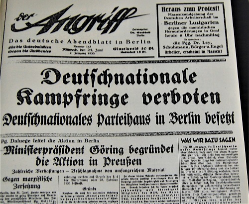 Gleich nach der Errichtung der NS-Diktatur am 30. Januar 1933 begann der neu ernannte Propagandaminister Joseph Goebbels als Herr über Presse, Film, Rundfunk, Bücher und bildende Kunst das bis dahin breit gefächerte Zeitungswesen im Deutschen Reich zu zerschlagen und gleichzuschalten (siehe Eintrag auf dieser Internetseite/Berlin vom 17. Januar 2020). Mit administrativen und polizeilichen Mitteln wurden dem Naziregime kritisch gegenüber stehende Autoren sowie solche jüdischer Herkunft mundtot gemacht, ins Gefängnis oder Konzentrationslager geworfen, ins Exil gezwungen und in einigen Fällen auch ermordet. Wer in Hitlers Reich etwas publizieren wollte, musste der Reichspressekammer und anderen dem Propagandachef unterstehenden Einrichtungen angehören. Diese Mitgliedschaft werde Personen verwehrt, die nicht ins politische und rassistische Schema der Nazis passten. So wurde die Crème der deutschen Publizistik zum Schweigen verurteilt, ging in die innere Emigration oder ins Ausland.