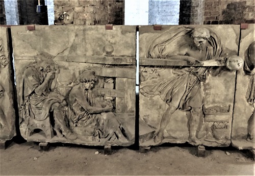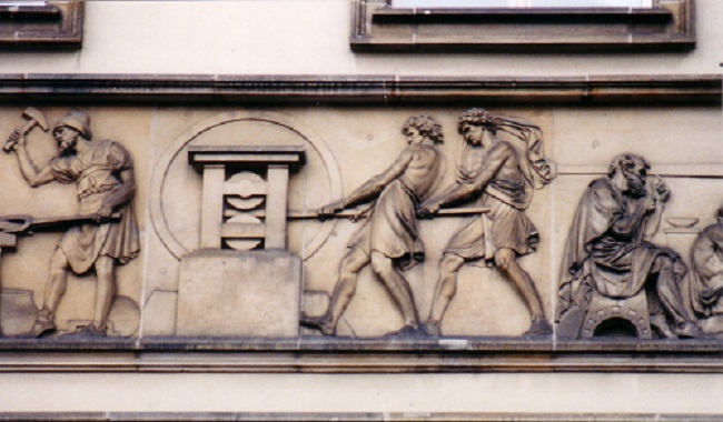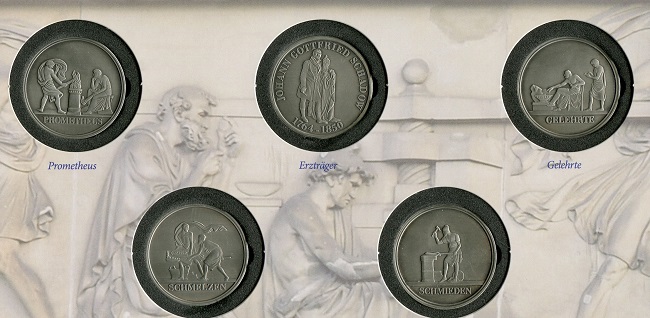 Interessant für die Zuhörer war die Mitteilung, dass Dr. Andreas Schikora, der Chef der Staatlichen Münze Berlin, den nach Entwürfen von David Gilly von Schadow geschaffenen Münzfries aus dem dunklen Verlies unter dem Kreuzberg-Denkmal ans Tageslicht holen und in seinem Betrieb erst reinigen und restaurieren und dann in einem großen Saal neben dem Betriebsmuseum aufstellen will. Entsprechende Verhandlungen mit den Staatlichen Museen sind angelaufen, sie sind der Besitzer des im Jahr 1800 an der Neuen Münze auf dem Friedrichswerder angebrachten Bildwerks mit Szenen aus dem Bergbau, der Metallverarbeitung und Münzprägung und weiteren eindrucksvollen Darstellungen. "Die Präsentation in der Berliner Münze wäre ein Weg, das berühmte Bildwerk nach langer, allzu langer Abwesenheit wieder der Öffentlichkeit zugänglich zu machen. Wir hoffen, mit dieser Initiative auch einen Beitrag zu leisten, dass Schadow nicht nur als Schöpfer der Quadriga wahrgenommen wird, sondern als ein außerordentlich vielseitiger, die Bildhauerei vor und nach 1800 befruchtender Künstler", meinte Claudia Czok. Bereits 2014 waren in der Münzfabrik an der Ollenhauerstraße 94 im Bezirk Reinickendorf Großfotos, die unterm Kreuzbergdenkmal von dem Fries angefertigt worden waren, zu sehen. Dazu erschien ein schöner Bild-Text-Band mit Erläuterungen und einem kleinen Katalog der Schadow und seinem Werk gewidmeten Münzen und Medaillen.