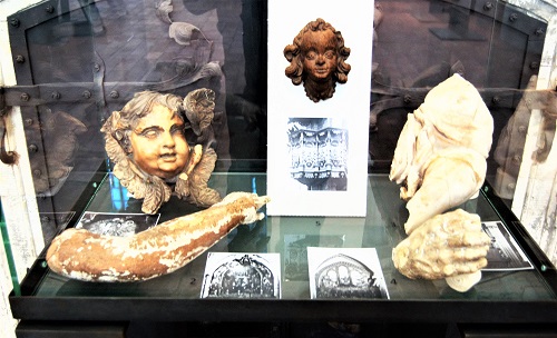 Von Archäologen und Bauleuten gefundene Reste ihrer kostbaren Ausstatung können in der Nikolaikirche betrachtet werden.(Fotos/Repros: Caspar)