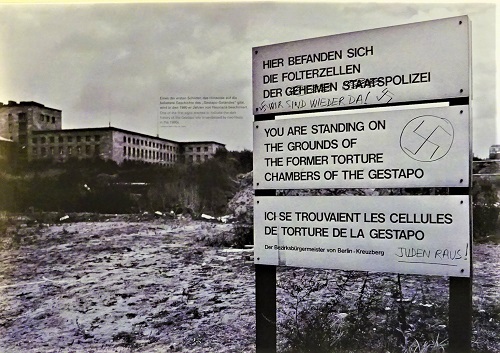 Wie kaum ein anderer Ort ist das ehemalige Gestapogelände an Wilhelmstraße und Niederkirchnerstraße, der früheren Prinz-Albrecht-Straße, im Berliner Bezirk Kreuzberg historisch belastet. Die Kriegsruinen des Hotels Prinz Albrecht und weitere Bauten wurden nach dem Zweiten Weltkrieg radikal beseitigt, die Erinnerung an die Verbrechen der Geheimen Staatspolizei (Gestapo) und SS, die hier geplant und durchgeführt wurden, war im damaligen West-Berlin unerwünscht, denn man blickte nach vorn und wollte so wenig wie möglich mit der blutbefleckten Vergangenheit zu tun haben. Erst im Vorfeld der 750-Jahrfeier Berlins 1987 entsannen sich Historiker und engagierte Bürger der Tatsache, dass es auf dem von Gras und Büschen überwucherten Gelände nicht weit von Hitlers Reichskanzlei sowie Ministerien in der Wilhelmstraße schreckliche Geschichte geschrieben wurde.