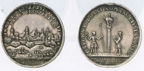 Im Heiligen Römischen Reich deutscher Nation besaßen große und kleine Fürsten und Städte das einträgliche und mit viel Prestige verbundene Münzrecht. Sie schmückten ihre Münzen und Medaillen mit Wappenschildern, allegorischen Figuren und prächtigen Panoramen, verbunden mit viel Selbstlob und frommen Sprüchen. Die metallnen Miniaturen sind beliebte Sammelstücke, die in der numismatischen Literatur gut aufgearbeitet sind und vom Handel regelmäßig angeboten werden. Das Münzkabinett der Staatlichen Kunstsammlungen Dresden zeigt bis zum 24. Januar 2021 anschließend an seine von der Antike bis zur Gegenwart reichenden Dauerausstellung die Sonderschau "Stadtbilder Europas - Ansichten von Städten auf Münzen, Medaillen und Papiergeld". Vorangegangen war an gleicher Stelle eine Ausstellung zur fünfhundertjährigen Geschichte der Kollektion, der ältesten der Staatlichen Kunstsammlungen Dresden.