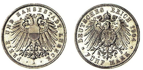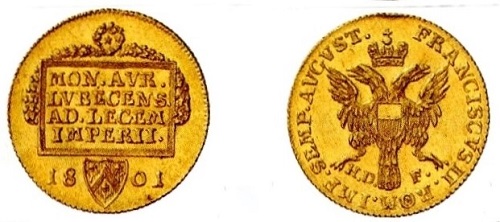 Mit der Prägung von Doppelschillingen ab 1492 und Markstücken ab 1502 legten sich Hamburg, Lübeck, Lüneburg und Wismar ein einheitliches Münzdesign zu. Es zeigt auf der Vorderseite das Wappen einer dieser Städte und auf der anderen Seite die heraldischen Zeichen der drei anderen. Ähnlich gestaltet sind die Markstücke, die ab 1502 von den vier Städten geprägt wurden. Als 1566 die Augsburger Reichsmünzordnung beschlossen wurde, gingen die im Wendischen Münzverein zusammengeschlossenen Städte zur Talerwährung über. Die Doppelmarkstücke wurden durch die Reichsmünzordnung von 1559 in den Rang von Reichstalern erhoben. Diese schweren Silbermünzen sowie ihre Stückelungen sind bis 1776 mit fast unverändertem Design - Johannes der Täufer und Doppeladler - geprägt worden. Lübeck bewahrte nach dem Untergang des römisch-deutschen Reiches im Jahr 1806 seine Souveränität und konnte sie nach den wenigen Jahren der Besetzung durch die Franzosen auf dem Wiener Kongress von 1814/15 erfolgreich verteidigen. Als Mitglied des Deutschen Bundes besaß die Freie und Hansestadt den Status eines souveränen Staates, der in den wichtigsten Haupt- und Hafenstädte Gesandtschaften und Konsulate unterhielt. Im Unterschied zu den Schwesterstädten Bremen und Hamburg, aber auch zu Wismar und Rostock hat Lübeck auf eine eigene Münzprägung verzichtet, weshalb der letzte Lübecker Dukat die Jahreszahl 1801 trägt.