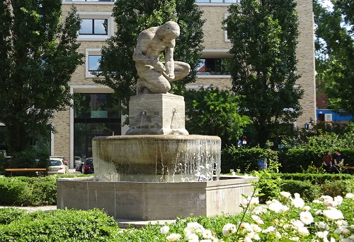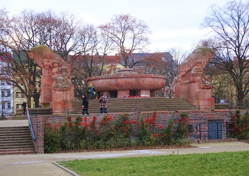 Die 1981 eingeweihte Skulpturengruppe ersetzt ein 1902 aufgestelltes, im Zweiten Weltkrieg zerstörtes Feuerwehrdenkmal auf dem Mariannenplatz, das von dem schon erwähnten Ludwig Hoffmann ebenfalls als Brunnen entworfen wurde. Beiderseits eines großen Marmorsarkophags erhoben sich Pylonen mit Flammensymbolen obenauf, aus zwei Löwenköpfen floss Wasser in ein Becken, und auf einer Tafel wurden die Namen der Feuerwehrleute genannt, die im Dienst für die Allgemeinheit ihr Leben lassen mussten. Das kriegsbeschädigte Denkmal wurde 1958 abgerissen, etwa an seiner Stelle erhebt sich seit 1960 eine fünf Meter lange, mit Flammenstrukturen bedeckte Gedenkwand, die an UNSERE TOTEN DER BERLINER FEUERWEHR erinnert. Angehörige der Berliner Feuerwehr halten jeweils am Totensonntag im November vor der von Guido Jendretzko und Dietrich Wolf gestalteten Flammenwand eine Gedenkstunde für ihre bei der Bekämpfung der Flammen und der Rettung von Menschen ums Leben gekommenen Kameraden und Kameradinnen ab.