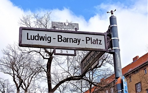 Zwischen 1927 und 1930 hatten die Genossenschaft deutscher Bühnenangehöriger und der Schriftsteller-Schutzverband rund um den Laubenheimer Platz in der Nähe des Berliner Südwestkorsos eine Siedlung für notleidende Künstler und Autoren errichtet. Anlässlich der 80. Wiederkehr der Gründung des Deutschen Theaters erhielt er 1963 den Namen von Ludwig Barnay, der zu den Gründervätern dieser renommierten Spielstätte gehörte. Der aus Budapest stammende Schauspieler und zeitweilige Direktor des Königlichen Schauspielhauses in Berlin war Gründer und Ehrenpräsident der Bühnengenossenschaft, die die Künstlersiedlung nach Plänen von Ernst und Günther Paulus und anderer Architekten errichten ließ. Die Gedenktafeln an verschiedenen Gebäuden rings um den Platz und den Straßen der Umgebung erinnern an den Philosophen Ernst Bloch, den Interpreten proletarischer Lieder Ernst Busch, den Schriftsteller Johannes R. Becher, der es in der DDR zum Kulturminister brachte und von dem der Text zur DDR-Hymne stammt, ferner an Dichter, Journalisten und Interpreten wie Axel Eggebrecht, Walter Hasenclever, Peter Huchel, Alfred Kantorowicz und Erich Weinert.