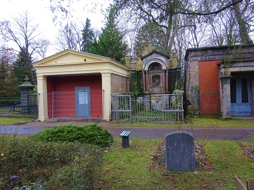 An der Querallee zwischen Gedenkkreuz und Eingang Ackerstraße stehen fünf monumentale, historisierend gestaltete Mausoleen auf jeder Seite des Wegs mit den Rückseiten zueinander. Die Errichtung des spätklassizistischen Mausoleums erfolgt zwischen 1871 und 1887, dem Todesjahr der Ehefrau. Bisher ist der Name des Baumeisters unbekannt. Das Mausoleum weist stilistische Ähnlichkeit mit der in der gleichen Grabreihe gelegenen Grabstätte der Familie des Rittergutbesitzes Ferdinand Spieckermann auf. Die beiden Säulen, die ursprünglich den Portikus des Mausoleums Wiesenack zierten, und die Eingangstür sind heute nicht mehr vorhanden, und auch die originale Innenausstattung ist nur in Resten erhalten. Das Mausoleum befindet sich unweit des Eingangs an der Ackerstraße. Dort befinden sich auch die Gräber der Komponisten Albert Lortzing und Walter Kollo sowie Wilhelm Bach, der letzte Enkel von Johann Sebastian Bach. Als Lortzing 1850 am Friedrich-Wilhelmstädtischen Theater in Berlin, dem heutigen Deutschen Theater, als Kapellmeister angestellt wurde, war das für ihn weder künstlerisch noch finanziell sonderlich erfreulich. Zwar lockten seine Opern viele Zuhörer an, doch hatte er materiell nicht viel von ihnen. Verschuldet und verarmt starb der Komponist volkstümlicher Opern und weiterer Werke bereits Anfang 1851 in seiner Geburtsstadt Berlin.