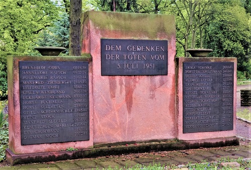 Schuld war der Benzinmotor, dessen Vergaser defekt war. Sofort stand das gesamte Schiff in Brand und tötete alle Kinder, die im Unterdeck saßen. Trotz einer der schnell eingeleiteten Rettungsaktion des Fahrgastschiffs "Elfriede" und zahlreicher Freiwilliger kamen nach DDR-Angaben 28 Kinder und 2 Betreuer ums Leben. Schätzungen im damaligen West-Berlin zufolge sollen es bis zu 49 Personen gewesen sein. Die Trauer war groß, zahlreiche Menschen waren dabei, als die Opfer dieses Unglücks auf dem Zentralfriedhof Friedrichsfelde bestattet wurden. Ihnen zum Gedenken und zur Mahnung wurde dort etwas abseits von der Gedenkstätte der Sozialisten ein mit Namen und Geburtsdaten versehenes Grabdenkmal errichtet. Viele dort genannte Kinder hatten das zehnte Lebensjahr nicht erreicht, einige waren Geschwister. Warum sie nur wenige hundert Meter von der Gedenkstätte der Sozialisten bestattet wurden, bleibt Spekulation. Die Genehmigung und der Bau der Anlage durch die SED-Führung und DDR-Regierung hatte ganz sicher nichts mit dem Eingeständnis zu tun, dass Schlamperei und mangelndes Verantwortungsbewusstsein zu der Katastrophe im Treptower Hafen führten.