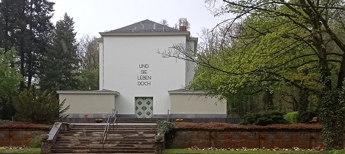 Eine in der Nähe der Trauerhalle im Boden liegende Gedenktafel aus Metall hält die Erinnerung an Kinder und Jugendliche verschiedener Konfessionen sowie an Betreuer und Beamte wach, "die zwischen 1859 und 1896 auf dem damaligen Friedhof des städtischen Waisenhauses Rummelsburg und seiner späteren Abteilung des städtischen Arbeitshauses Rummelsburg bestattet wurden. Seit etwa 1915 gilt dieser Friedhof als aufgelassen. In der DDR wurde er als Teil einer Gefängnisanlage versiegelt. 2012 wurden für den Bau neuer Wohnhäuser die Abdeckung entfernt, die geborgenen Gebeine hierher umgebettet und im November 2014 auf Beschluss des Bezirks Berlin-Lichtenberg die Erinnerungsstätte angelegt."