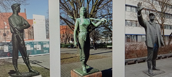 Von der Mühseligkeit der Schuttberäumung ist bei diesen Helden der Arbeit, wie damals ein Ehrentitel hieß, nichts zu spüren. Den unzähligen ungenannten Trümmerfrauen und Aufbauhelfern ist es zu verdanken, so Cremer Botschaft, dass nach dem bis dahin schrecklichsten aller Kriege wieder Leben in die Straßen, Wohnsiedlungen und Industriebetriebe kam. Der Bildhauer hat darauf verzichtet, die Frau mit Kopftuch, langer Hose und Stiefeln und den Mann mit Schirmmütze mühselig und gebeugt an einem Schuttberg arbeitend darzustellen. Vielmehr zeigt er sie selbstbewusst stehend, wie sie eher gelassen, ja heroisch auf einen Trümmerberg zugehen, um aufzuräumen und Neues zu bauen. Manch einer von uns wird sich erinnern, dass es in der DDR den ironisch gemeinten Begriff "Arbeiterdenkmäler" gab. Mit ihnen waren nicht etwa die beiden Bronzefiguren in der Cremerschen Art quer durch den zweiten deutschen Staat gemeint, sondern Werktätige, wie man damals sagte, die mal eben eine Pause machen und sich, eine Zigarette im Mund oder eine Flasche in der Hand, unterhalten und den "lieben Gott 'nen guten Mann sein lassen", mit anderen Worten bummeln und nicht das tun, was sie eigentlich sollen.