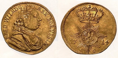 Runck hin, Stieff her - Soldatenkönig Friedrich Wilhelm I. war sich nicht zu schade, höchstpersönlich der Münzsammlung seines Vaters Friedrich I. zahlreiche Goldmünzen zu entnehmen und sie dem Schmelztiegel zu überantworten, um den 1713 übernommenen Schuldenberg seines Vorgängers auf dem preußischen Thron abzutragen. Auf diese Weise büßte das königliche Münzkabinett 319 Goldmünzen und Goldmedaillen aus dem 16. und 17. Jahrhundert von zum Teil beträchtlichem Gewicht bis zu einem Kilogramm pro Stück ein. Anzuerkennen ist, dass Friedrich Wilhelm I. antike Münzen unberührt ließ. Schlechtes Gewissen hat ihn offenbar nicht geplagt, denn er wollte mit gutem Vorbild voran gehen und seine Untertanen ermuntern, sich zum Wohl des Staates von überflüssigem Edelmetall zu trennen. Einhundert Jahre später fand zu Beginn der Befreiungskriege von 1813 bis 1815 der Aufruf zu "Gold gab ich für Eisen" großen Widerhall, durch den große Mengen Edelmetall zur Ausrüstung von Freiwilligen zusammenkamen und auch der Hof überflüssiges Tafelsilber dem Schmelztiegel überantwortete. Unbekannt ist, wie viele Münzen und Medaillen dabei vernichtet wurden.