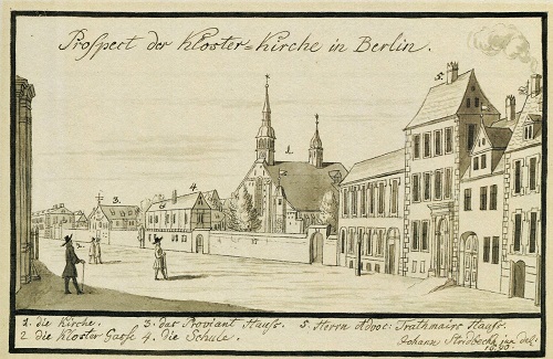 Nach der Einführung der Reformation durch Kurfürst Joachim II. von Brandenburg (1539) wurden alle Klöster aufgehoben. Im Grauen Kloster behielten die grau gekleideten Franziskanermönche lebenslanges Wohnrecht. Kurfürst Johann Georg gründete 1574 durch Zusammenlegung zweier Lateinschulen ein Gymnasium, dem er das ehemalige Kloster samt Kirche zuwies. Mit der Zeit entwickelte sich das Berlinische Gymnasium zum Grauen Kloster, so der offizielle Name, zur wichtigsten Kaderschmiede und Lehranstalt der brandenburgisch-preußischen Hauptstadt, die ja erst 1810 eine eigene Universität erhielt, die heutige Humboldt-Universität. Hier erhielten künftige Beamte, Geistliche, Militärs und andere Personen das Rüstzeug, um an den Universitäten in Frankfurt an der Oder, Königsberg, Wittenberg, Leipzig und anderswo studieren zu können.