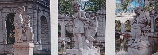 Zurück zum Märchenbrunnen. Ludwig Hoffmann musste seine Pläne auf Wunsch des Monarchen verändern, kam aber am Ende doch ans Ziel. Als Baukosten wurden 70 000 Mark veranschlagt, dafür bekam der Kaiser etwa zwei Figurengruppen auf der fast zeitgleich im Berliner Tiergarten errichteten Siegesallee! Da der städtische Etat der Stadt Berlin nur 100 000 Mark betrug, konnten andere Projekte nur eingeschränkt verwirklich werden oder blieben ganz auf der Strecke. Da der Tag der Eröffnung wegen des prunkvoll gefeierten Kaiserjubiläums festgelegt war, standen die Arbeiten unter einem hohen Zeitdruck. An der Fertigung der mehr als 40 Figurengruppen und der Kolonnade im Hintergrund waren mehrere Bildhauer beteiligt. An den Rändern des Wasserbeckens wurden wasserspeiende Frösche aufgestellt, die zehn Märchenfiguren sind Werke von Ignatius Taschner.