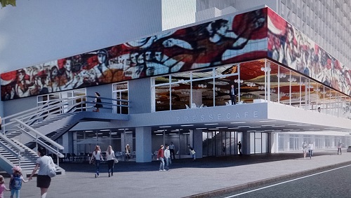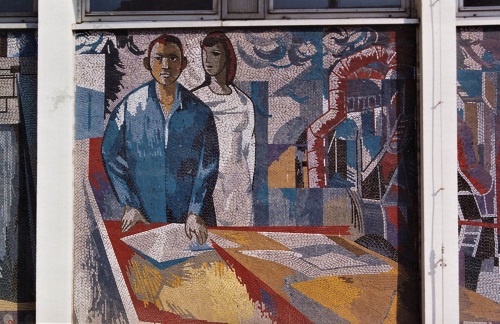 Rechenzentrum in der Potsdamer Breiten Straße ist mit einem ungewöhnlichen Mosaik geschmückt