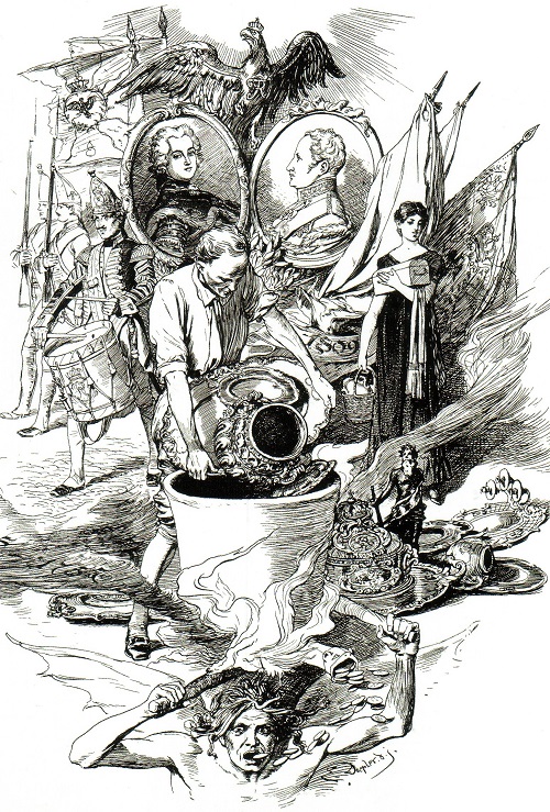 Auch das Königshaus erlegte sich ein strenges Sparprogramm auf und ließ bis auf wenige Ausnahmen sein Silber- und Goldservice einschmelzen. Nachdem man das Volk aufgerufen hatte, Gold und Silber zu spenden, war es König Friedrich Wilhelm III. seinen Untertanen schuldig, ebenfalls Besitztümer auf den Altar des Vaterlandes zu legen, wie man damals sagte. So kam es, dass viele Preziosen eingeschmolzen wurden. Münzfreunde kennen so genannte Kontributions- und Vaterlandsmünzen, die in verschiedenen deutschen Fürstentümern und Städten vor und nach 1800 aus Silberspenden der Herrscher und ihrer Untertanen geprägt wurden.